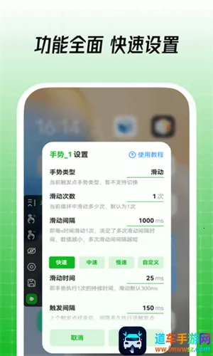 鼠大侠自动连点器优势显著。它操作极为简单便捷,新用户有新手引导,能轻松学会使用方法。还有全局设置,方便用户更好地配置参数。无需root权限就能打开无障碍服务,一键运行,手动设置参数即可开始。遇到问题也有常见问题解答,轻松帮用户解决。无论是游戏刷礼品、抢红包,还是视频点赞、抢单等,它都能出色完成,支持多种模式,通过手势录制完成复杂操作,还提供多种个性化自定义手势,满足各种重复性操作需求,是一款不可多得的实用工具。