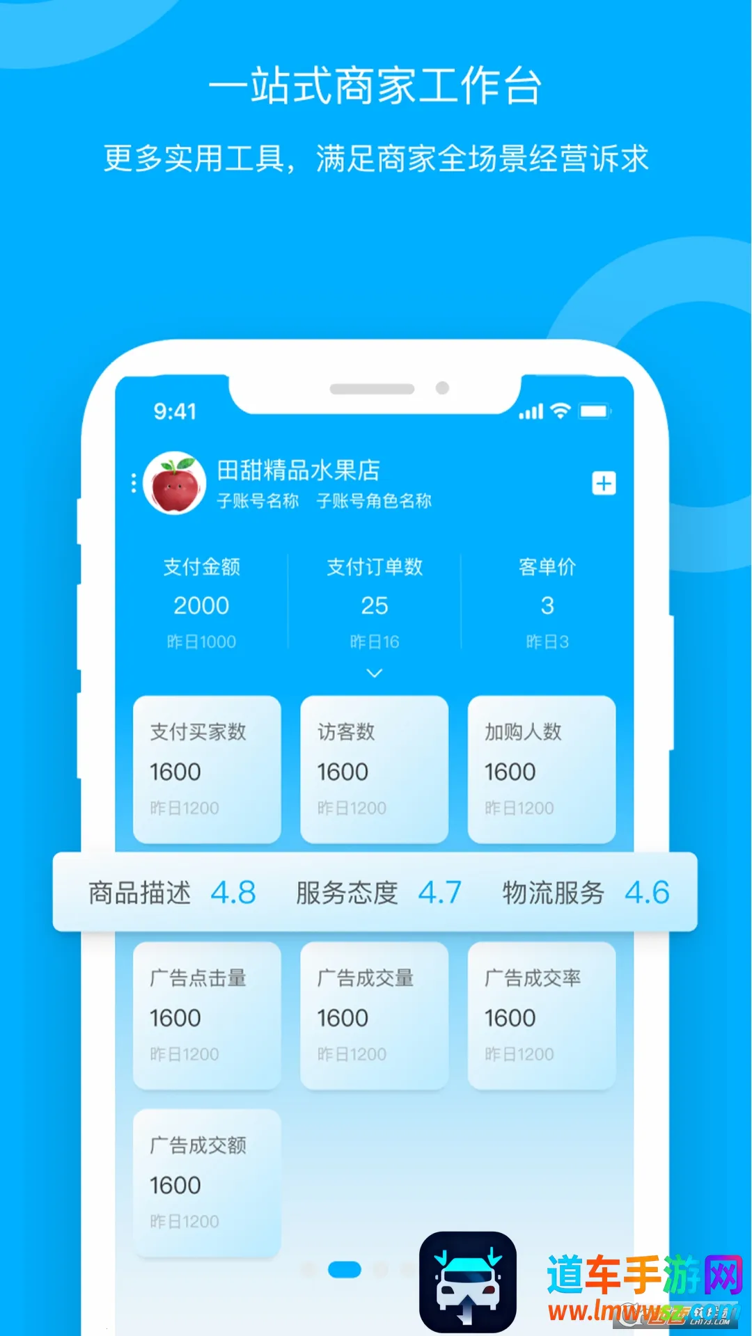 1. 一站式办公:提供专属工作台,支持用户一站式办公,满足全场景经营需求,轻松管理店铺各项事务。