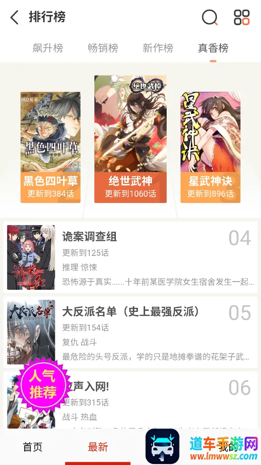 软件界面简洁,分类清晰,查找漫画超方便。既可以在首页看推荐漫画,也能搜索自己心仪的作品,还能在最新页面根据榜单挑选。它支持离线下载,你可以提前把喜欢的漫画缓存到本地,这样即使没网络,也能随时随地畅享精彩内容。
