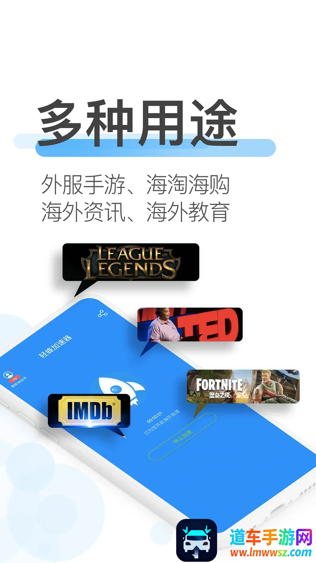 用途多样:满足外服手游、海淘海购、海外资讯、海外教育等多种用途加速需求。