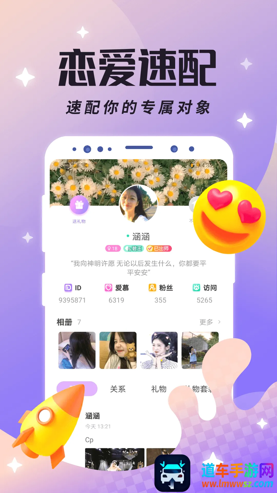 想找虚拟恋人软件?那这款虚拟恋人app你可不能错过!它是一款超有趣的聊天交友平台,能实时匹配聊天、语音连麦。在这里,不管是找朋友还是谈恋爱,都能得到很多帮助。它有多种玩法,比如K歌大比拼、虚拟相亲等,组队PK超刺激,能让你感受声音的魅力。还有各种福利红包拿到手软,能彰显身份的装备等级,助你邂逅有缘人。同城在线匹配,能拉近彼此距离,拒绝无聊,开启欢乐时光。家族氛围温情满满,大家可以一起娱乐八卦、展现自我、畅聊兴趣爱好。还能分享生活点滴,无论是吐槽还是心灵悄悄话,都能找到共鸣。新潮表情互撩互聊,一言不合就发红包,尽显豪气与任性。快来下载体验,找到属于你的陪伴吧!