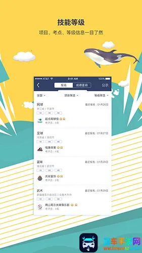 4. 功能板块多样:设有青少年体育冬夏令营、运动技能等级标准、U系列赛事等核心版块,还有考试报名、成绩查询、公示等功能,以及问卷、公告、分享等特色版块,方便用户了解各类信息。