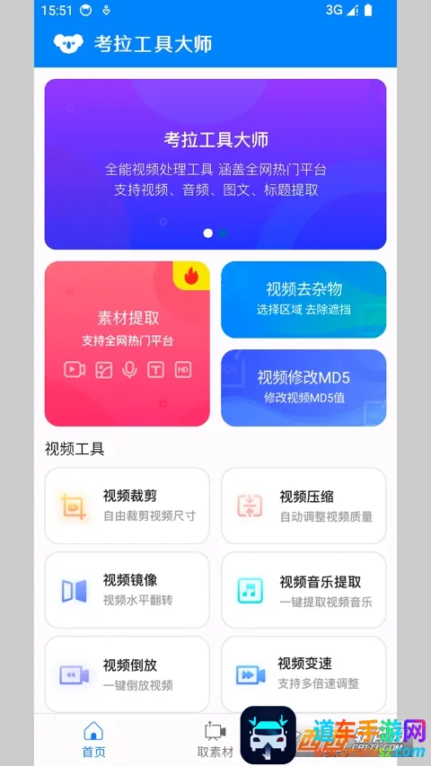 3. 功能丰富:集成众多实用视频工具,如去杂物、修改MD5、视频裁剪、压缩、镜像、音乐提取、倒放、变速等,应有尽有。