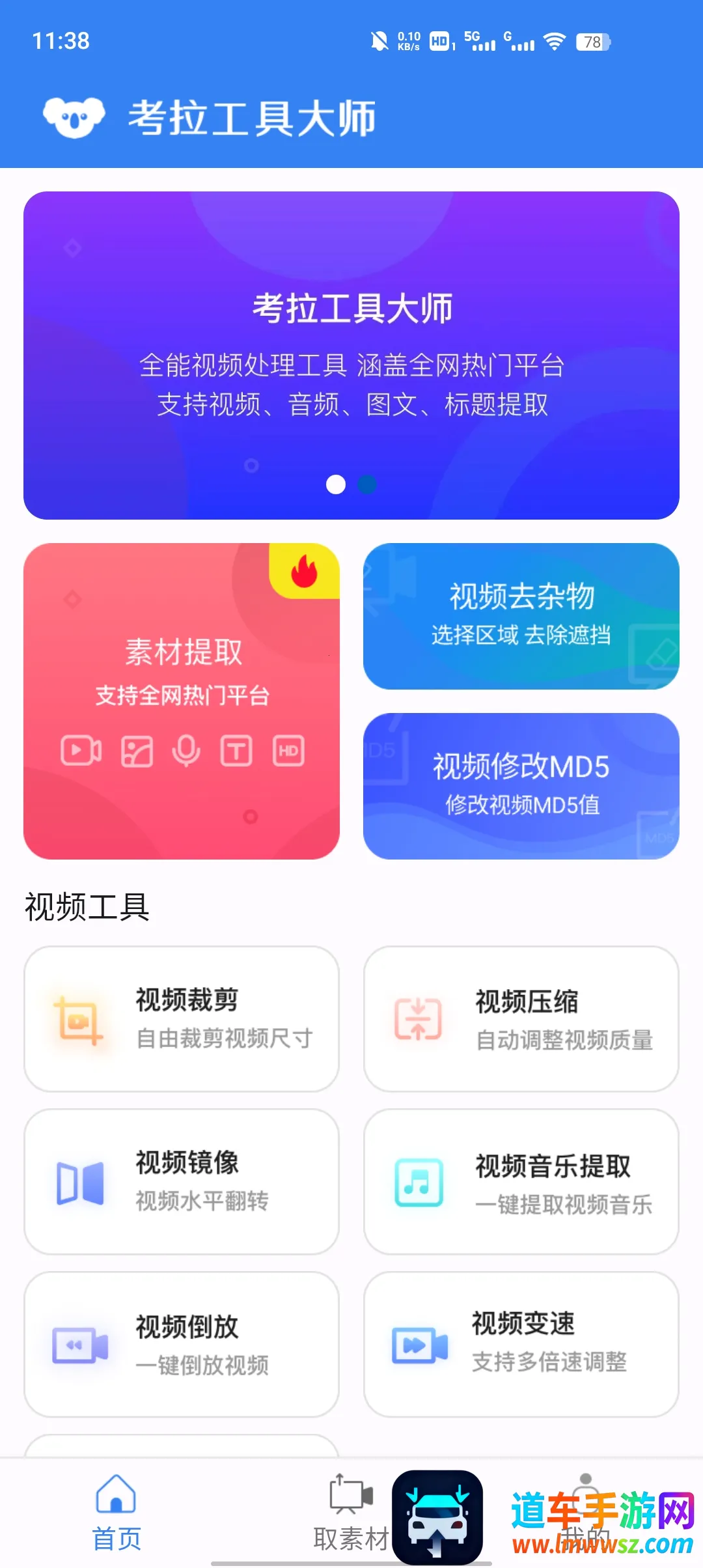 考拉工具大师是一款综合了全网热门平台视频资源获取和视频处理功能的专业软件。它能帮助用户轻松获取无水印短视频,还提供多种视频处理工具,如去除视频水印、图文水印、视频去杂物、修改MD5、视频裁剪、压缩、镜像、音乐提取、倒放、变速等。