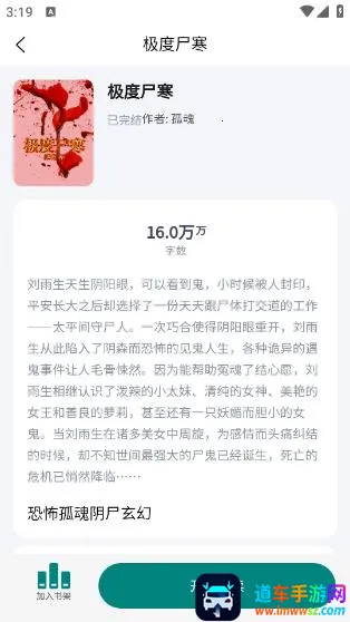 2、看到喜欢的小说记得点加入书架下次在书架里就能快速找到继续读不用再重新搜索为你省时省力。