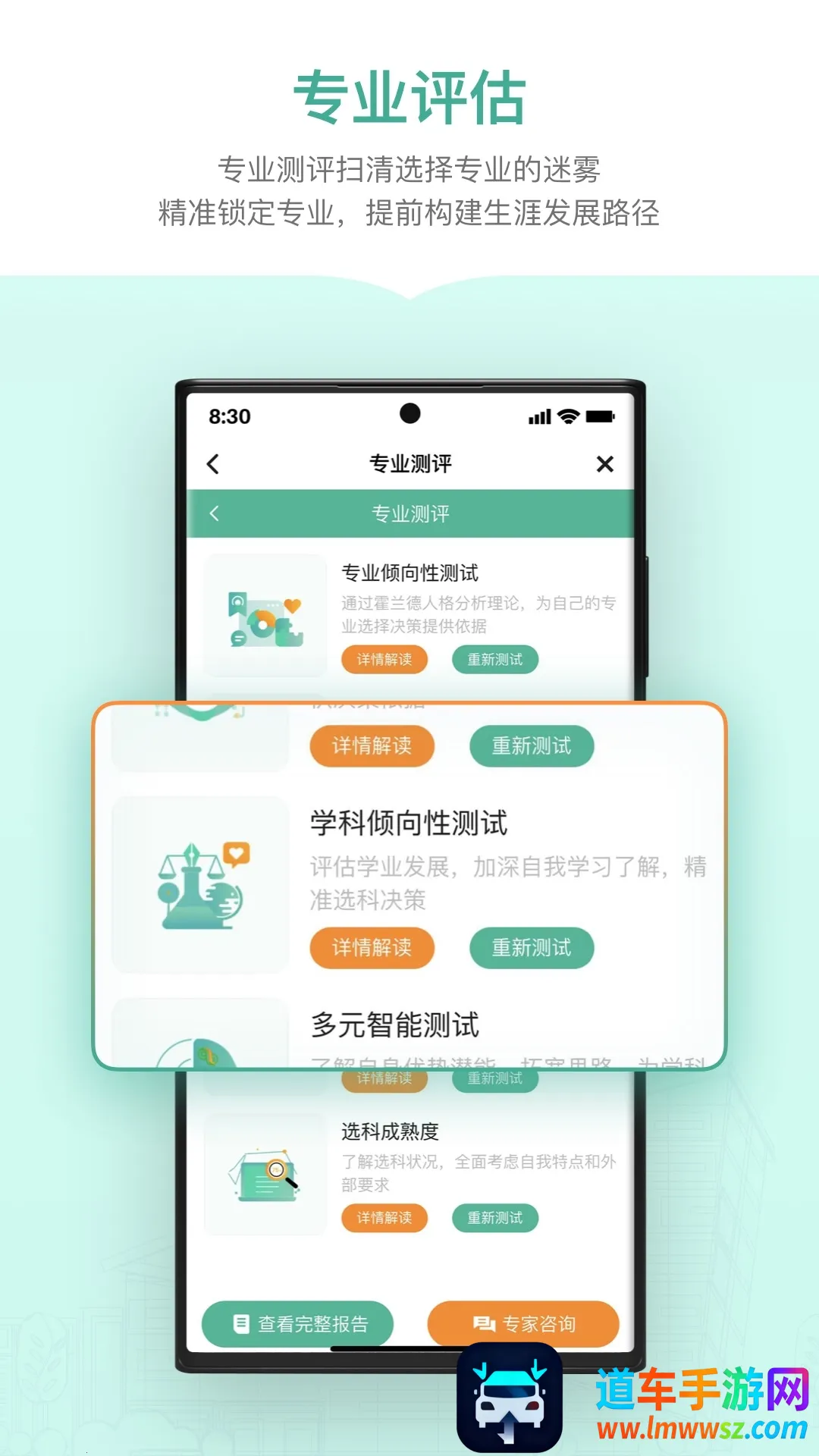 4. 专业评估精准:通过专业测评,帮考生扫清选专业的迷雾,精准锁定专业,提前构建生涯发展路径。
