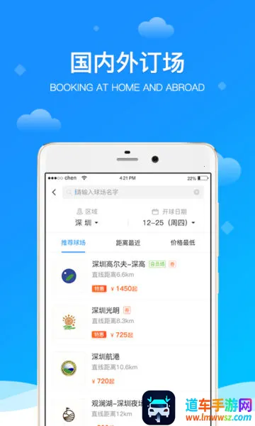 2. 便捷预订服务:汇集全国球场优惠打球价格,让您随时随地查询Tee-Time,方便快捷预订球场,还支持一键在线预订国内外场地。
