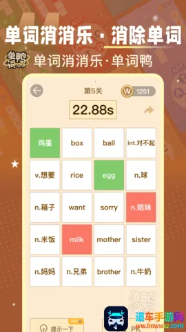 单词鸭是一款寓教于乐的英语学习软件。它以游戏化方式呈现,像玩消消乐、数独一样学单词,摆脱枯燥背单词模式。游戏关卡基于艾宾浩斯遗忘曲线生成,千人千面抗遗忘。