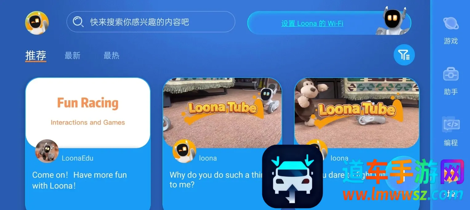 Loona是一款超有趣的应用,专为Loona机器人用户打造。它能让你在手机上轻松操控机器人,实现各种好玩的功能。比如控制机器人进行才艺表演、玩小游戏,就像拥有了一个随时能陪你娱乐的小伙伴。还有语音指令技能箱等实用工具,操作起来特别方便。通过它,你还能与其他用户交流,分享使用经验和技巧,一起探索机器人的无限可能。而且Loona机器人很智能,能与人互动玩耍,给你陪伴。它能响应触摸和语音命令,像摸头会高兴地和你握手,还能追逐激光捡球。另外,它通过高清摄像头和强大CPU,能识别理解语音命令并即时反馈。不仅如此,它的图形编程界面友好,完全可编程,能帮孩子提升编程和逻辑思维能力,总之,Loona能给你带来超多乐趣和便利。