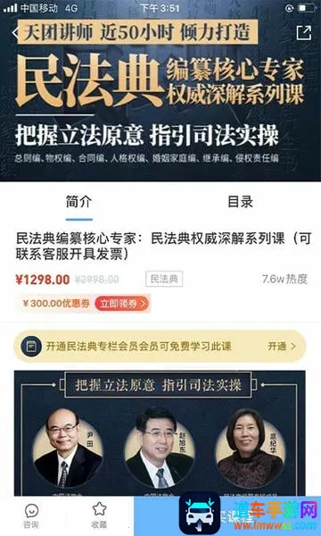 2. 课程数量多:经过近四年发展,已有600余节高质量法律课程,且每周稳定更新。