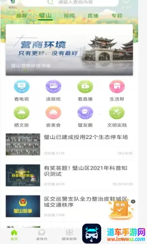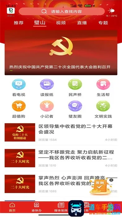1、功能丰富多样,集电视广播、新闻资讯、社交媒体、游戏娱乐、生活服务等多种功能于一体,设有掌上快讯、璧山电视频道等20多个功能板块。