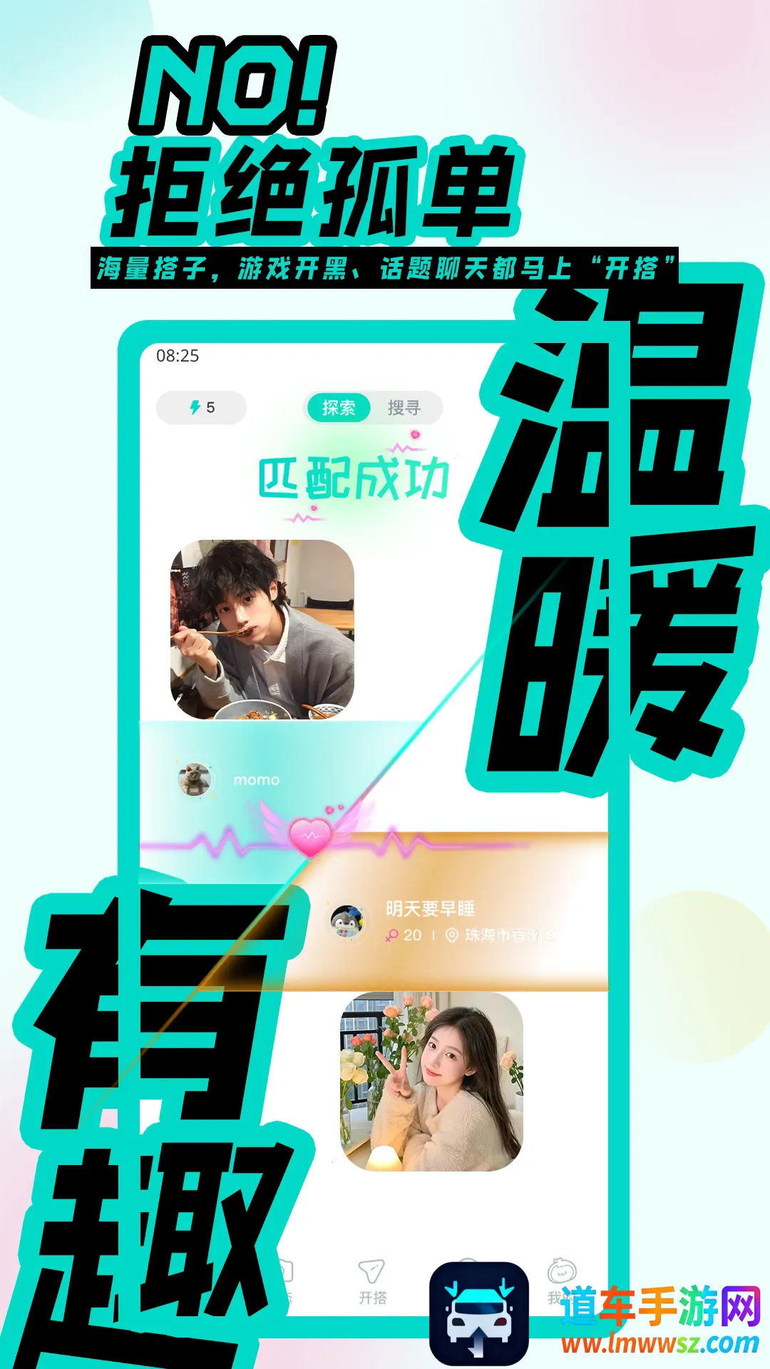 都趣搭是一款专为Z世代打造的专属聊天平台。在这里,能看到许多有趣用户,可一起交流互动,拉近彼此距离。它有不少圈子,能找到志趣相投的同伴,还有强大匹配功能,快速找到知心好友。汇集了学生、毕业生、职场人士等不同群体,能轻松找学习搭子、漫展Cosplay搭子、减肥健身搭子以及游戏搭子等,认识不同行业领域的用户。平台构建了纯净绿色社交空间,运用智能匹配系统,综合考量兴趣爱好、地理位置和活动偏好,一键锁定专属搭子。真实信息认证,让相遇真实可靠。依托地理位置推送周边活动,告别孤单宅家。坚决抵制不良低俗社交,营造安全有趣、轻松活泼的社区氛围,让社交回归本质,借助互联网优势帮你快速找到灵魂契合的伙伴。