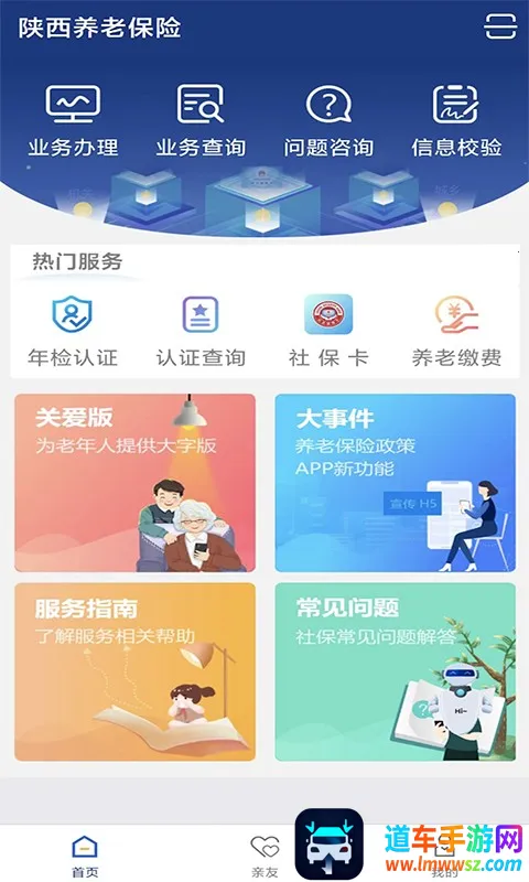 陕西老龄年检认证 2026 官方最新版是专为老年人打造的社保服务软件,集成多项功能。界面简洁,操作简单,可在线年检认证、查询参保信息等,还能解决常见问题,提供适老化体验,方便老人办理社保业务。