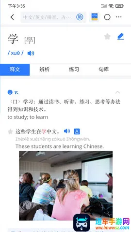 JUZI汉语最新手机版是万有知典北京数字传媒科技有限公司开发的汉语学习软件。集成多部词典,有丰富学习资源,支持多种输入检索,提供真人发音、动态笔画展示等,覆盖HSK大纲词汇,满足不同汉语学习需求。