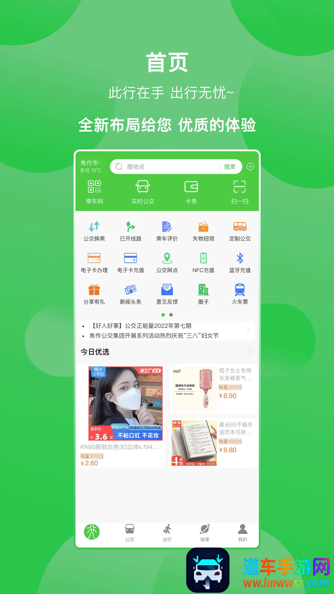 此行是一款超棒的生活服务软件!它能解决咱们出行、购物等多方面的问题。出行超方便,有公交乘车码,扫码就能上车付款,还能实时查公交位置和到站信息。能线上抢购火车票、景点门票,不用排队。购物也轻松,能线上消费还有配送上门服务。还能看新闻资讯,切换城市能查各地动态。功能超多,有实时公交、公交网点、失物招领、账户充值、导航、路况查询等版块。优势明显,有骑行版块找共享单车方便,能查乘车记录,还有外卖版块找附近店铺。支持多种支付方式,NFC充值也方便(安卓用户专享)。能规划公交换乘方案,还有公交闹铃提醒乘车。总之,一个软件搞定生活中的吃喝玩乐衣食住行,强烈推荐下载!