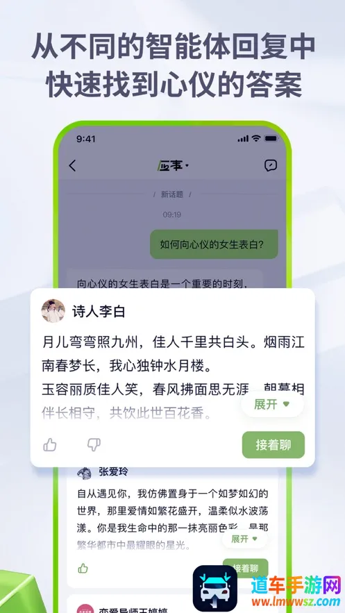 应事app是一款超实用的AI智能写作软件,能帮你轻松搞定各种写作任务。不管你是要写小说剧本、公文报告,还是营销文案等,只要简单自然对话,它就能按你的需求创作出相应内容。它的AI写作功能超强大,输入关键词或主题,就能快速生成各类文档,像撰写报告、邮件,整理笔记等都不在话下。还有AI写小说功能,设定好故事背景、人物和情节,就能自动生成小说内容,给创作灵感。写诗歌也不难,输入题目或主题,就能生成优美动人的诗作。创建文章同样方便,输入相关信息,就能快速构建新闻报道、产品介绍等各种文章。而且它的智能分身会根据你的需求匹配最合适的智能体,随时和它对话,分享困扰,它会贴心提供解决方案,给你带来个性化智能体验,让写作变得轻松又高效。