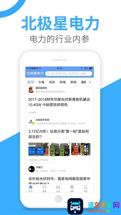 北极星电力手机版是集电力资讯发布、技术交流、社区互动于一体的应用。能及时提供行业动态等,界面简洁。有社区、首页、招聘、直播等功能,满足电力人多种需求,不断优化升级。