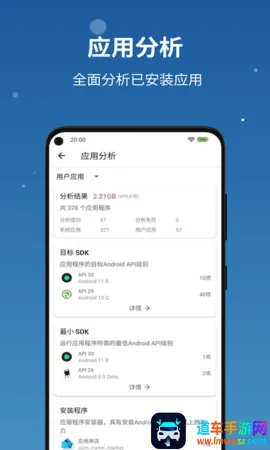 6.查看系统进程、系统应用、用户应用,可以非常详细的了解到每个应用的信息,包括包名称、版本号、SDK、进程名、APK路径、证书、服务、权限、原生库等等……以及可以对应用进行备份