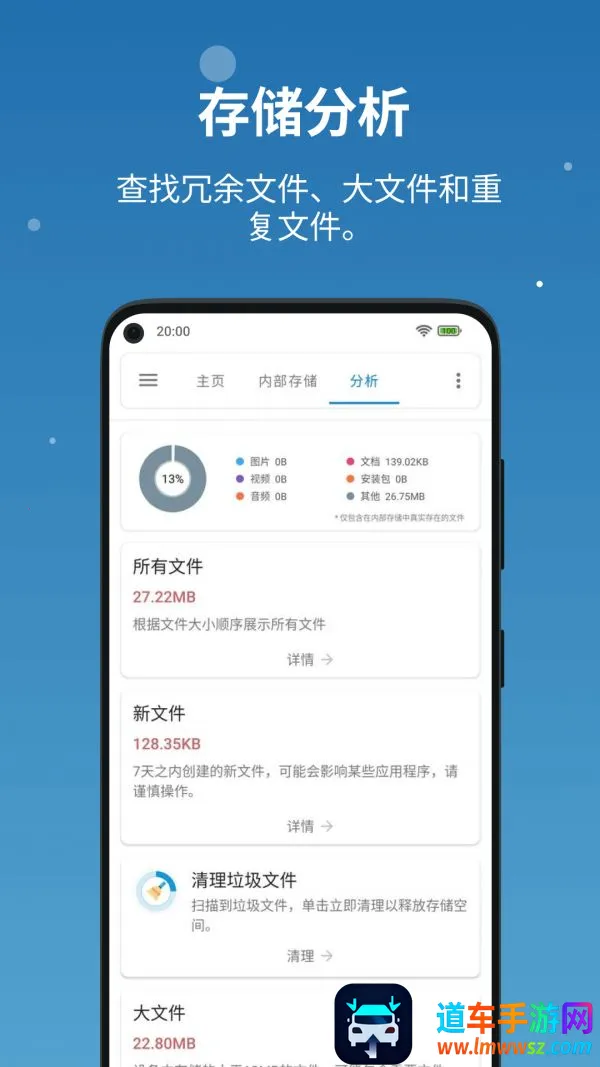 2.存储分析功能,可以帮助你查看手机里面什么文件在占用空间,方便你清理删除一些没用的文件