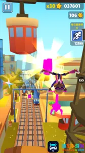 高分心得也很实用,购买开局得分加成道具、利用左侧道具加成、升级双倍得分道具以及先完成任务解锁基础得分加成等方法,能助力玩家获得更高分数。游戏节奏快,操作简单直观,还有多种玩法模式、海量道具和换装,能让玩家充分享受跑酷乐趣。