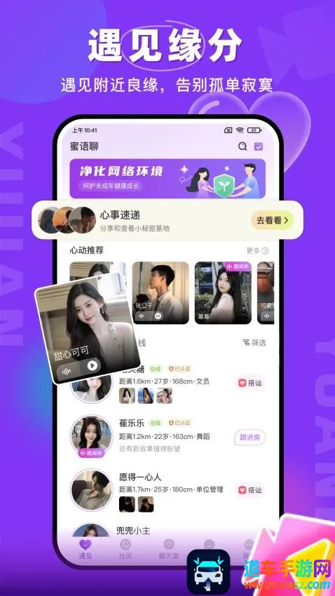 1. 缘分邂逅:能帮用户在附近找到合适伴侣,告别孤单,开启专属故事。