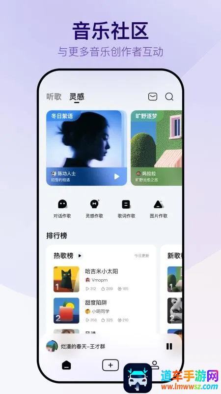 音乐社区互动:发布作品收获点赞粉丝,与全球爱好者碰撞火花,发现宝藏创作者进行二创接龙。