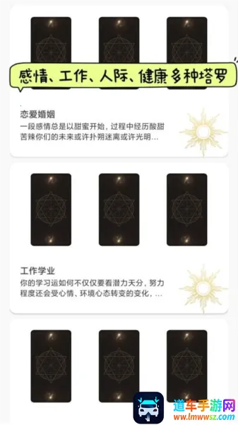 Max塔罗牌星座手机版集星座运势解析、塔罗牌占卜及趣味互动功能于一体。涵盖丰富知识,提供多维度运势预测、塔罗牌解析,还有答案之书等趣味功能,助用户洞察心理、优化人际、规划未来,理性决策。