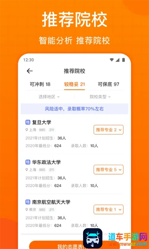 1. 智能算法推荐:考生填写分数,系统利用智能算法生成推荐院校与专业,并按冲刺、稳妥、保底分类,展示历年招生人数与录取分数线,真正一键推荐。