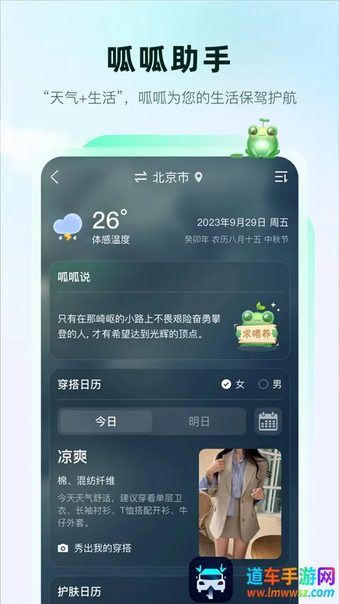 呱呱天气最新手机版优势显著。它**覆盖全面**,定位覆盖3千区县,4万乡镇街道,60万村庄社区。**实时更新**,天气数据分钟级更新,确保一手天气信息及时送达。提供短时降雨、40天预报、空气质量、潮汐预报、历史天气、天气预警等丰富功能。还有贴心建议,如呱呱助手提供多种生活场景建议,钓鱼指数给出未来15天逐小时的钓鱼指数和建议,穿搭指数推荐合适衣物搭配。能满足多领域需求,让用户轻松了解天气,便利生活。