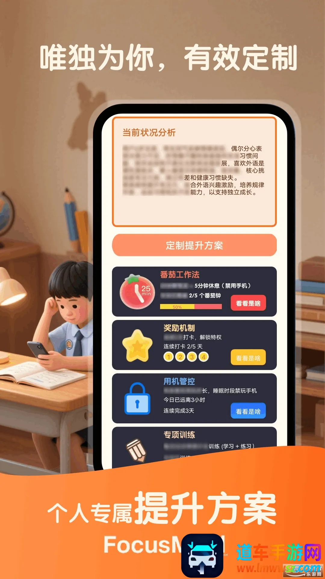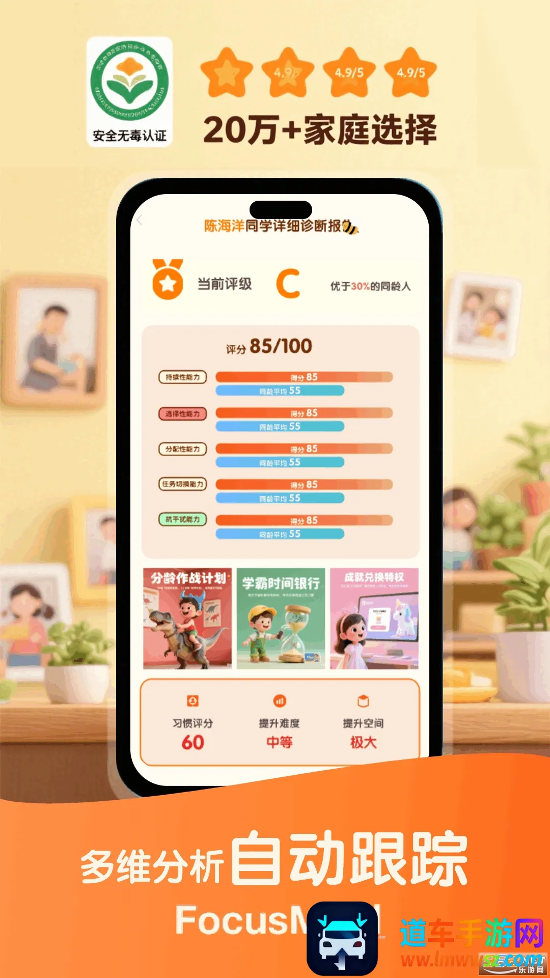 2. 专属提升定制:心理学团队研发智能算法,针对孩子设计趣味任务,用专注奖励替代刷屏;为成人打造番茄专注手机托管模式,自动锁定娱乐软件。