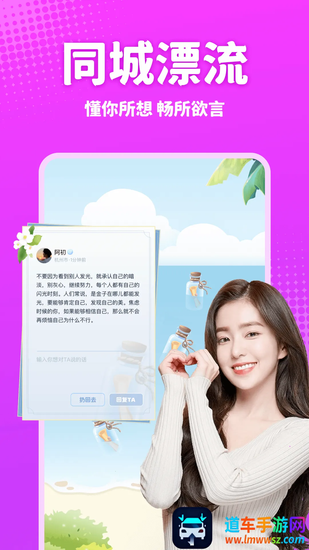 在社交软件众多的当下,有一款备受关注。它为同城单身用户搭建交友桥梁,能帮大家结识附近伙伴,拓展社交圈。通过智能匹配等,让社交轻松有趣。这里有海量真实用户,严格审核资料,保证了交友的高质量。你可以和附近陌生好友随时约见,充满别样情趣。还能在浩瀚人群中像在银河大海里点击瓶子般,看到不同人的倾诉,遇到心仪的也可扔瓶子出击。能放心进行生活交流和情感倾诉,陪聊服务单纯以陪伴解闷为主。语音和视频聊天功能简单易用,一点就能发起通话面对面交流。如此这般,为大家提供了一个不错的交友环境,让社交变得更有意义,能满足人们告别孤独、享受社交体验的需求,确实值得尝试一番。