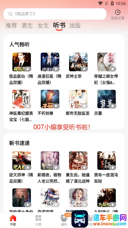 阅瓣小说安卓版是一款备受欢迎的小说阅读软件。它拥有丰富的小说资源,持续更新,让读者不用担心书荒。无论喜欢何种类型的小说,在这里都能找到,满足各种阅读需求。软件会依据读者的阅读偏好智能推荐相关小说,帮助轻松发现更多精彩作品。操作便捷,界面包含书城、分类、福利、书架和我的等栏目。书城有推荐、男生女生和听书等分类,还能通过搜索查找书籍。选择书籍后可查看详细内容,并能根据习惯进行字体、背景色、翻页等设置,看累了还能切换听书模式。福利界面完成任务可获金币奖励并提现。书架能快速打开想读的书籍,我的界面可查看相关信息及设置阅读偏好。总之,阅瓣小说安卓版能带来优质的阅读体验。