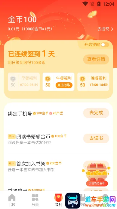 4. 福利多多:通过丰富福利任务赚取金币,金币可快速提现,新人福利每日签到阅读小说能快速获取大量金币,看小说还能赚零花。