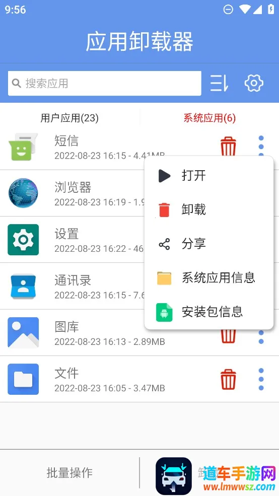 使用起来特别方便,下载安装后打开,就能自动识别手机中的应用。卸载时,点击应用旁的删除图标,确认提示就行。还能点击右下角三个点进行更多操作,比如打开、分享、查看安装包信息等。要是想批量卸载,点击左下角批量操作,选好应用再点卸载就搞定。