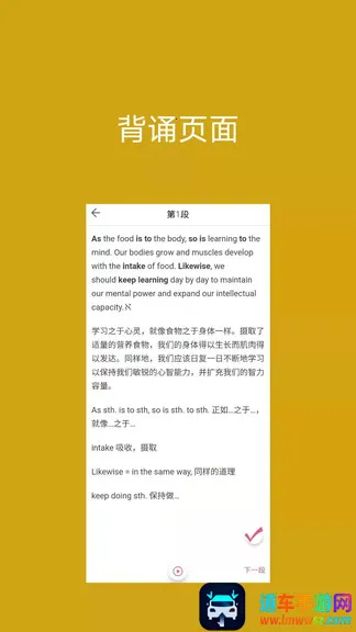 背啊英语是一款备受关注的英语学习软件。它提供多种学习方式,能有效帮助用户提升英语水平。其英语词汇经过精心挑选,适合各类考试人群提前学习。操作实用,新词可按需定制。学习效果优秀,资料免费且详细,还能制作单词书。软件界面简约生动,设计用心。有系统优化的学习计划,页面简约带来丰富体验,图像发散思维开启新领域,还有丰富视频课程营造英语氛围。功能强大,定期更新内容;简单易用,上手快;定位精准,通过AI推荐合适内容。点读翻译功能齐全,背诵功能助力快速记忆,还能结合孩子学习习惯和教学经验,融合多种学习模式,涵盖丰富英语文章,引导背诵技巧,在线搜索词义,是专属翻译专家,能让用户轻松学英语。
