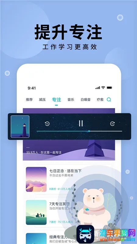 2. 引导式内容:专业老师带领,能轻松引领用户进入冥想状态,快速获取身心放松之道。