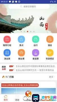 智慧五台山2026下载安装优势显著。它支持购买多种票,如火车票、汽车票、景点门票、演出票等,还能预定酒店住宿,出行无忧。会推荐热门景点的线下或旅游活动,可报名参与。推送旅游或景点热门资讯,能查看详情并评论。设有问答板块,能咨询问题、回复他人帖子。还可发布游记分享旅游足迹。更能在线预定导游,让游览景区有更详细介绍,全方位满足旅游需求,带来便捷舒适的五台山之旅体验。