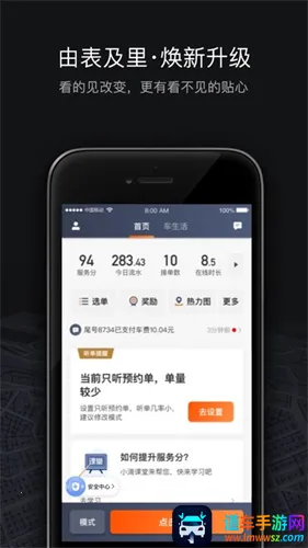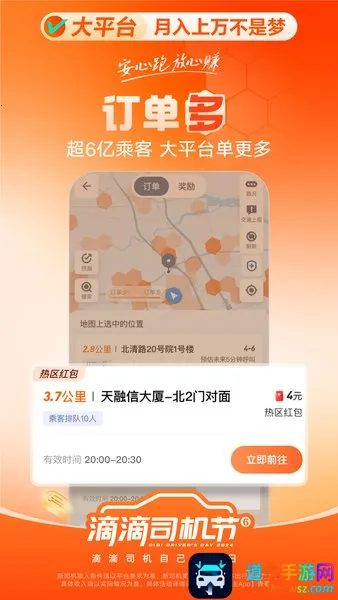 3、智能导航:导航升级为全屏化,视野更大,能实时进行最新消息通知,全力守护每一程安全,帮助司机快速查找附近接单热点。