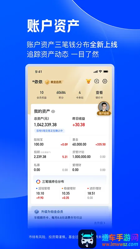 陆 PRO 最新手机版优势显著。它有着全新设计,能更好满足客户需求。专属定制为资金安全护航,专业人士助力市场分析并推荐方案,助您把握理财良机。交互细节优化,带来更好用户体验;体验升级,新增多个功能;服务升级,提供全方位优质服务。资金受平安银行监督,安全透明。操作自由,可设置多种投资方式,最低 1 元就能投资。还有智能推荐、涨幅排行等功能,让您轻松选基,随时随地掌控账户,开启便捷投资理财之旅。