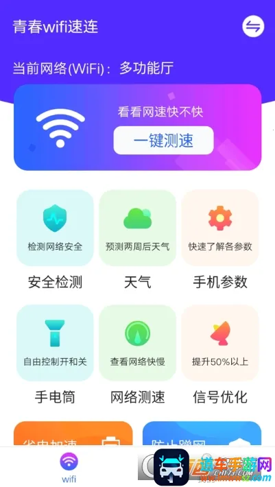 青春wifi速连是一款备受瞩目的网络管理与手机性能优化工具。它功能丰富,集WiFi智能连接、网速监测、病毒查杀、垃圾清理等多种功能于一体,且全程无广告干扰,所有功能免费开放。操作简洁高效,能助用户一键掌控网络状态,全面提升用机体验。
