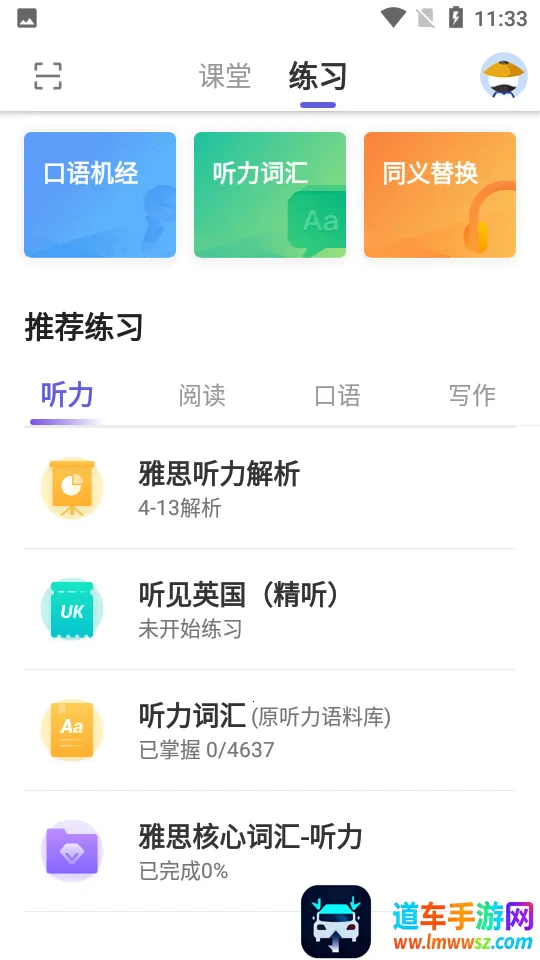 雅思考满分安卓版是一款专业雅思备考软件,覆盖口语、听力、阅读、写作、单词学习内容。提供真题练习、免费干货课程,有逐句精听、丰富语料库等功能,能助用户全方位备考,随时随地提升雅思成绩。