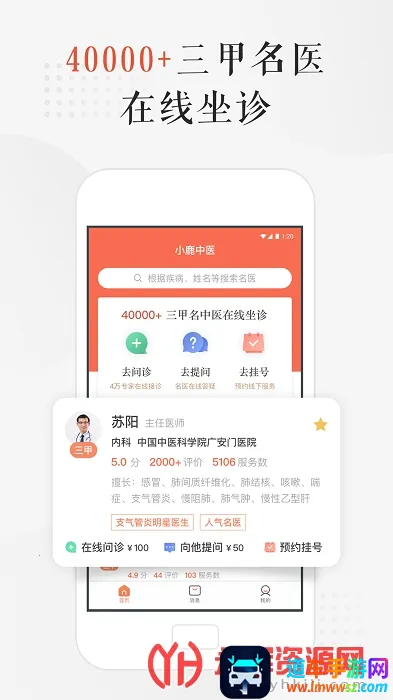 小鹿中医是全国首家拥有医疗机构执业许可证的互联网中医医院。有5.3万三甲医院医生,涵盖在线问诊、名医答疑、预约挂号、在线购药等服务,近60个科室,专家在线秒回复,还能送药到家,已服务千万患者。