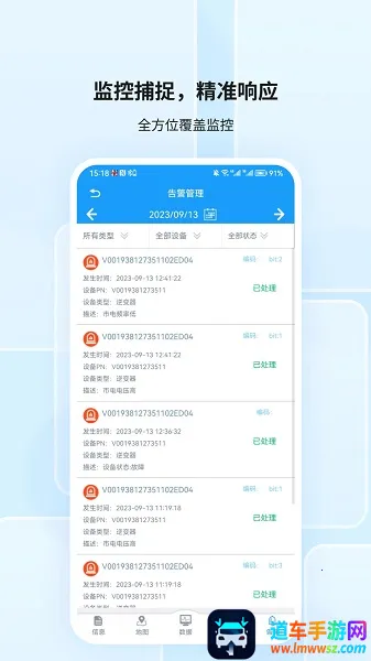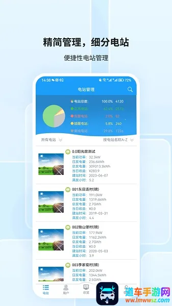护光者光伏的终端监控软件能让工作人员便捷监测光伏电站运营状况,数据可视化,图表简明易懂,可随时随地通过网络展示实时及历史数据,还能快速创建电站及设置信息,通过扫描二维码增加采集器,节省流量。免费版能订制个性光伏动态,提供行业政策等资讯,连接多方确保用户对接。整体来看,护光者光伏依托公司实力,在光伏监控等方面有一定优势。