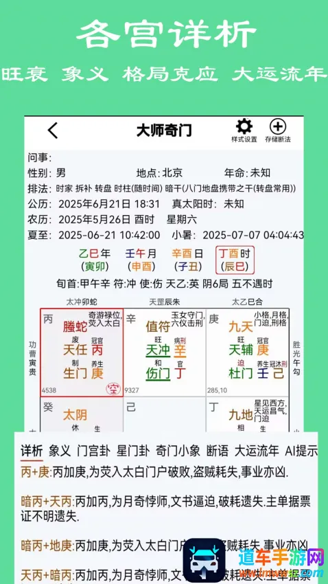 2. 详情解析:提供详细的排盘解析内容,全方位助您了解运势命理,掌握自身好运与生活信息。