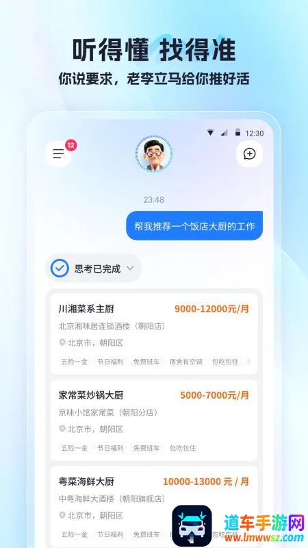 老李2026官方正版优势显著。它汇集海量好工作,能多样化筛选查找,满足不同需求。支持智能语音输入,可智能问答相关问题,找活更便捷。能查看个性化推荐职位,岗位真实有效,待遇清晰,还可免费申请心仪岗位,快速找到理想工作,为用户提供安心的求职保障,让求职轻松无忧。