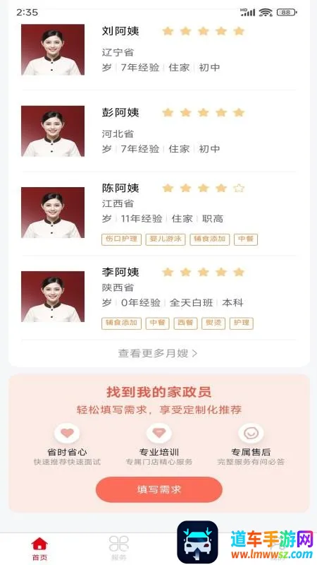 这里服务类型多样,用户可随心筛选,然后选择心仪的家政服务人员预约下单。平台展示清晰的服务日历,能让用户实时了解家政服务安排,还可全程追踪服务进程。而且它提供透明的服务计价,用户能清晰查看费用明细。所有接单服务人员都经过专业认证,保障了服务安全。