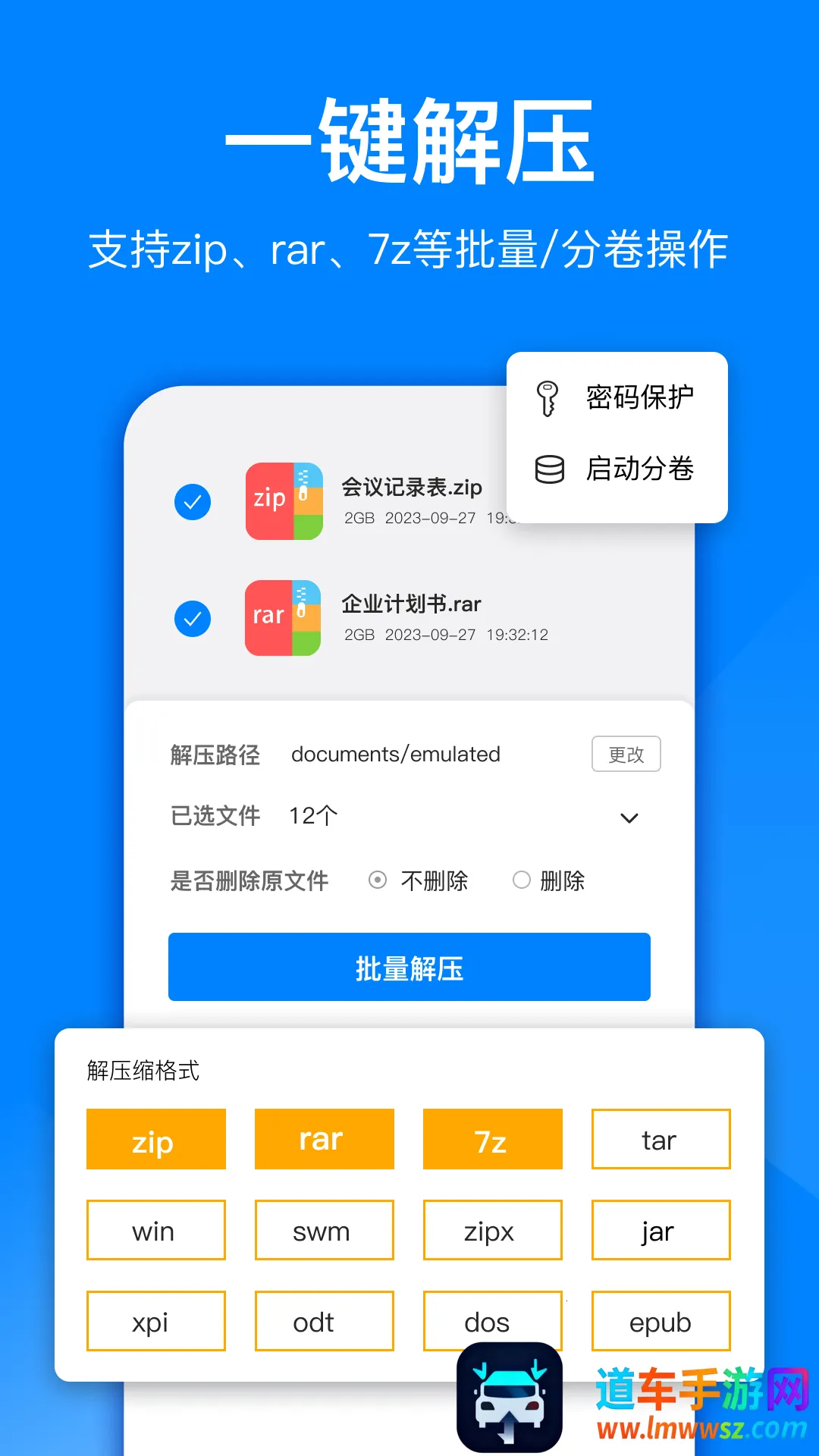 1. 支持多种主流压缩格式,如ZIP、RAR、7Z等,满足不同用户需求。