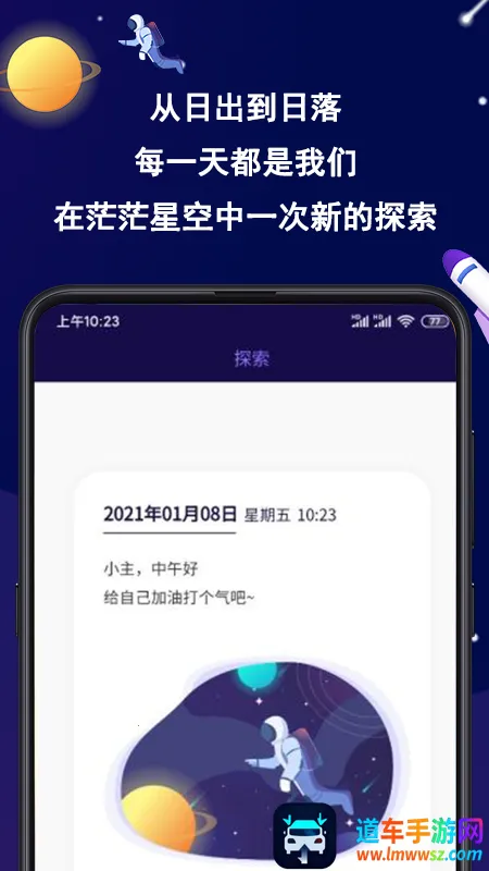 你在找能记录生活点滴、抒发内心感受的软件吗?那这款类似北大宣传片风格的星空日记App就很适合你!它有多元记录形式,文字、语音、图片、视频全维度记录,不管是灵感还是心事,都能找到合适方式珍藏。智能分类与标签系统,能帮你高效管理内容,回忆轻松可得。沉浸式星空主题界面,多款背景特效随心切换,昼夜模式营造仪式感记录体验。学生能记录学习成长,职场人可复盘工作规划职业。压力大时能倾诉心事,创意工作者能捕捉灵感。使用也简单,首页太空舱可进各模块,通讯录舱记录探索报告,任务舱记待办事项,睡眠舱记睡眠时长,空间站还能开启隐私保护。v1.0.3版本新增日记搜索和睡眠页面等功能。快来下载体验吧!
