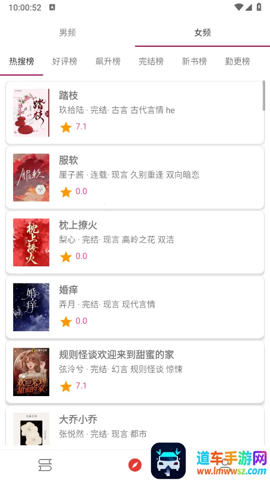 4. 榜单推荐:设有热搜榜、好评榜、飙升榜、完结榜、新书榜等,分男频女频分类,方便快速找热门优质小说。