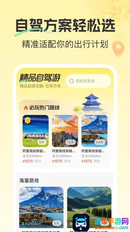 1、丰富路线:软件提供丰富多样的自驾路线,更多选择助您轻松掌握途中环境。